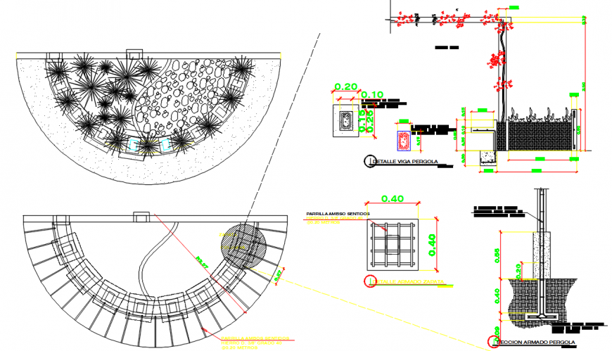 THE BANKS TO BE CARRIED OUT IN THE PARK THE GUITARS WILL BE OF ARMED CONCRETE, LEGITIM IRON BEDS OF 3/8 ", GRADE 40, WITH THEIR RESPECTIVE TRANSLATIONS, AND BURIED ACCORDING TO THE SPECIFIED IN PLANS WILL BE USED.