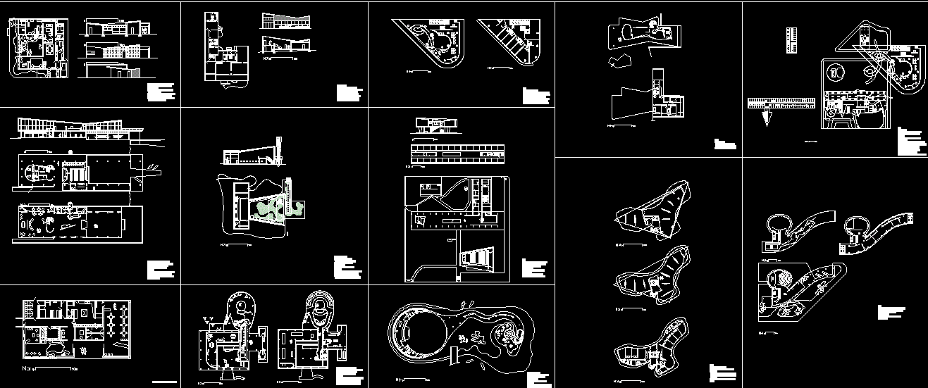 This AutoCAD DWG file presents the Famous architecture works of renowned Brazilian architect Oscar Niemeyer, showcasing his signature modernist style and organic geometry. The drawing includes detailed plans, elevations, and sectional layouts of multiple iconic architectural projects designed by Niemeyer. Each design reflects his creative mastery in sculptural form, spatial flow, and dynamic composition. The DWG file provides valuable reference material for architects, students, and engineers studying 20th-century modern architecture.