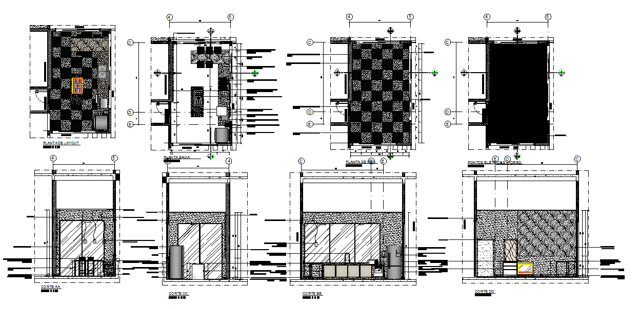 Kitchen Interior design Detail. Technological advances during industrialization brought major changes to the kitchen. Iron stoves, which enclosed the fire completely and were more efficient, appeared.Kitchen Interior design DWG file.
