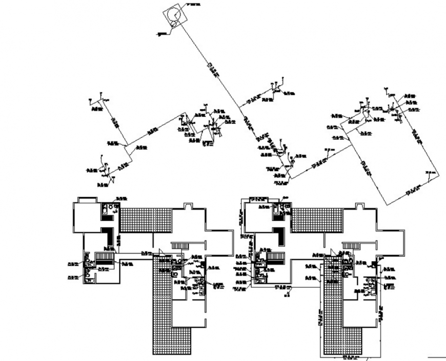 plumbing drawing, a type of technical drawing shows the system of piping for bathroom and kitchen water going into the tank and waste going out, both solid and liquid.