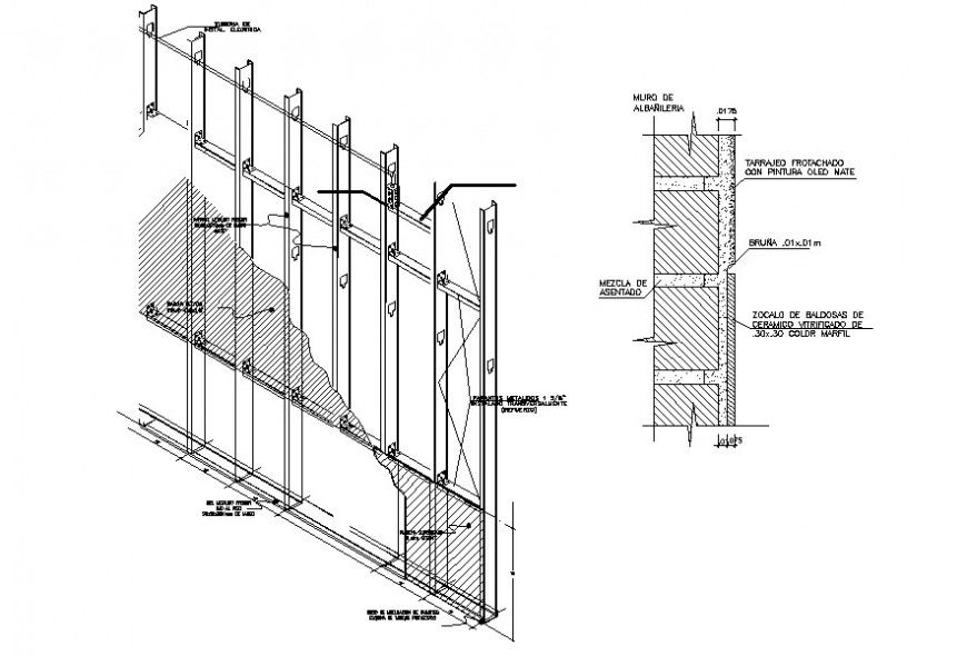 2d cad drawing of ceiling heat insulation included metal stainless steel1 5/8 "transversally installed with wood screw interior reinforcement for the location case of the box of tomacorrientes and switches.
