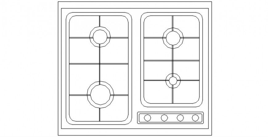 Gas cookware top view detail. here there is top view 2d gas stove detail concept file details in auto cad format