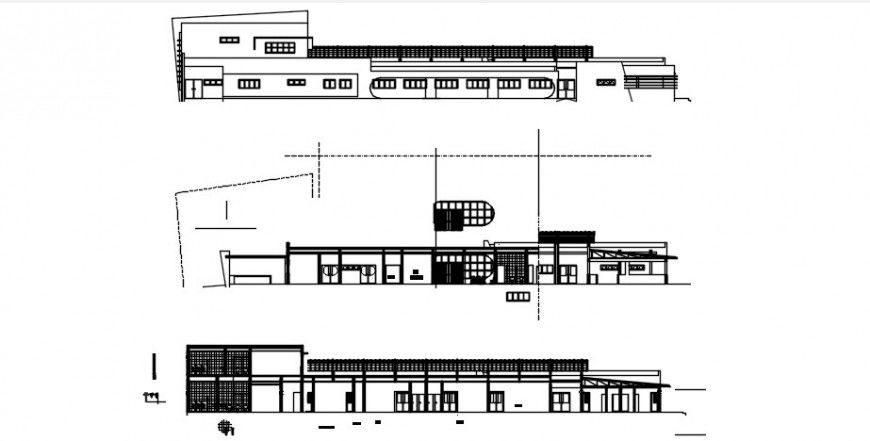 Hospital building elevation design.  here there is front nd side elevation of building design details with all sides of elevation design in auto cad format