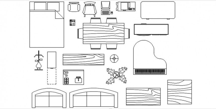 Furniture cad blocks details files. here there is top view cad blocks of tables, chairs , sofa , dining table an piano table details in auto cad format