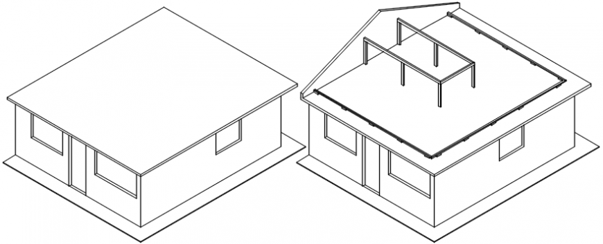 Pent house detail 2d view elevation. here there is sectional detail of pent house structure showing roofing concept and other details in auto cad format