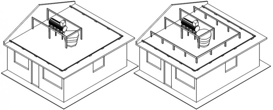 Solar heater top roof elevation detail. here there is sectional detail of house structure showing solar heater installation detail in auto cad format