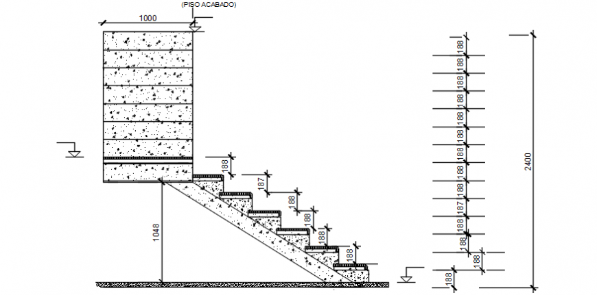 2d cad drawing of Staircase Step Detail in section plan along with many more detail about description and dimension detail in autocad software file download in a free feature