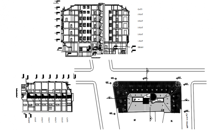 2d cad drawing showing that working elevation design and roof plan in autocad format, download in free dwg file and get more detailing working building construction detail cad file.