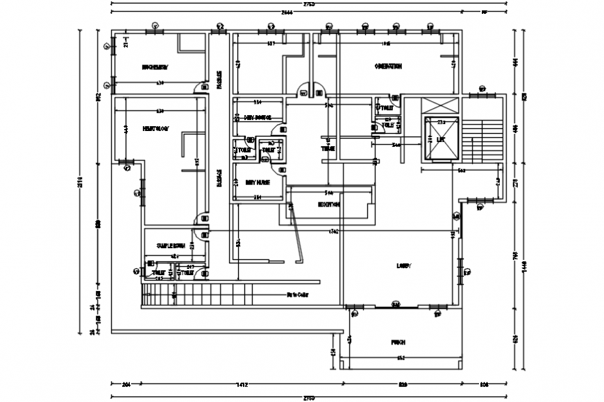 Hospital top view layout plan details , here there is top view layout plan of a hospital with various departments and text detailing in auto cad format