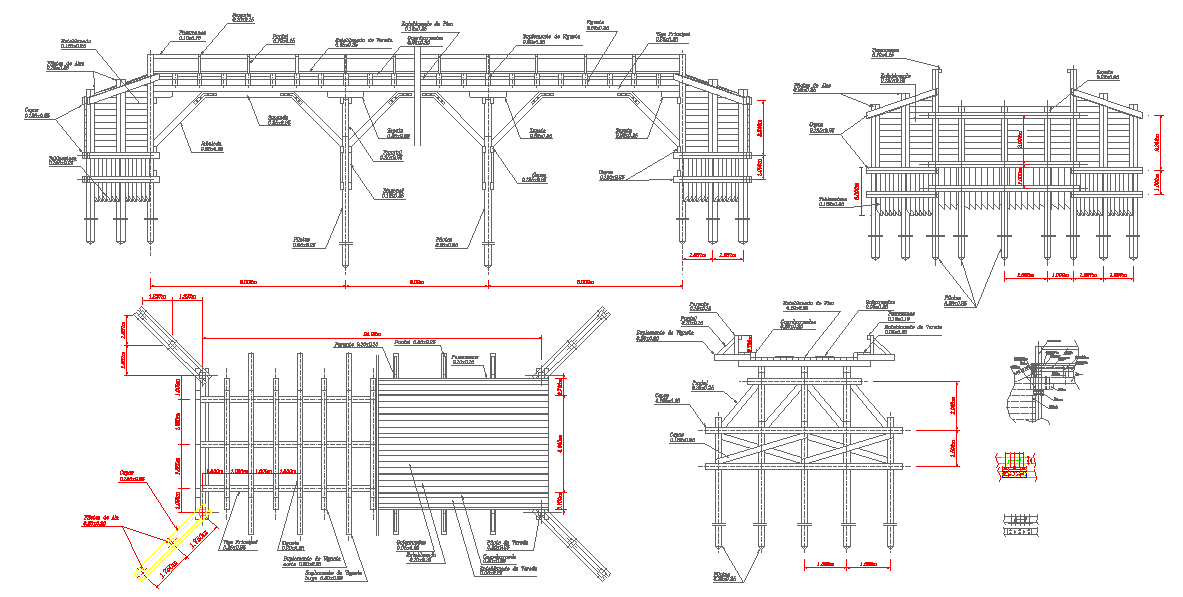 This wooden Bridge Design Draw in autocad format.This wooden design draw in autocad format. A Timber bridge or wooden bridge is a bridge that uses timber or wood as its principal structural material.Wooden Bridge DWG file.