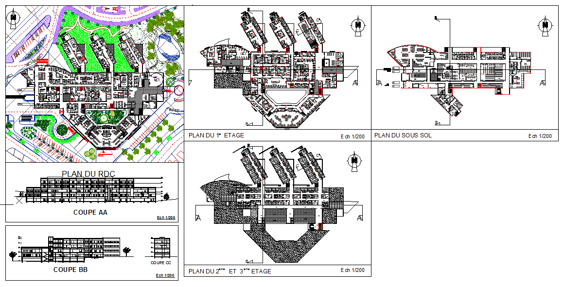 Download the General Hospital Project DWG file with detailed floor plans, sections, and elevations. Perfect for architects and planners creating healthcare facility layouts.