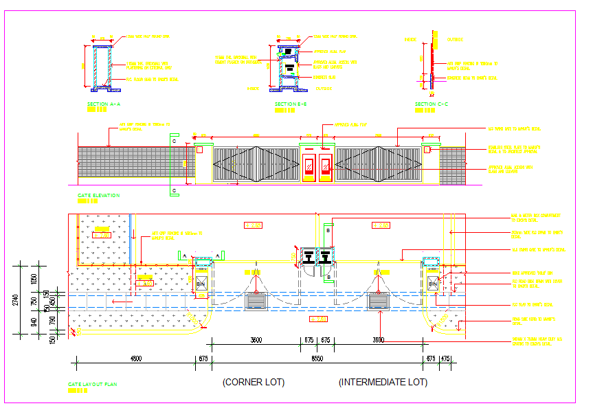 Main Gate Design Download file,Main Gate Design Detail, Main Gate Design DWG file. Elevation plan of main gate design with much more information in autocad file.