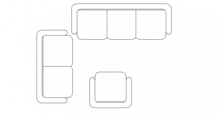 CAd drawings details of sofa with all three types of seater blocks dwg file that includes line drawings of furniture blocks