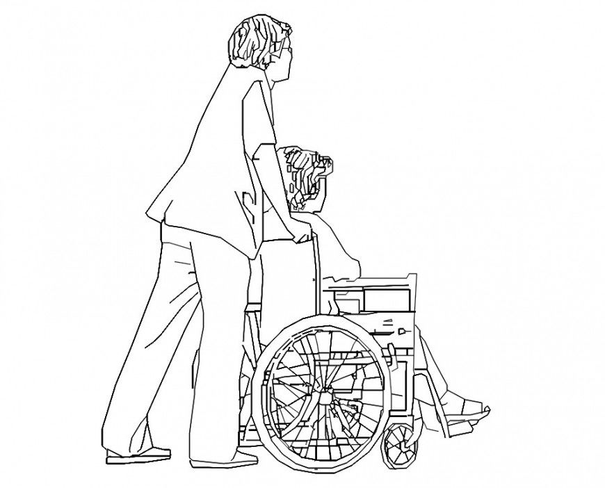 2d cad blocks of handicap chair on people inside view, download in free feature of autocad file which is used in hospital project for cad presentation.