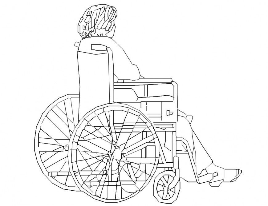 2d cad blocks of the patient on handicap chair in side view, download in free feature of autocad file which is used in hospital project for cad presentation.