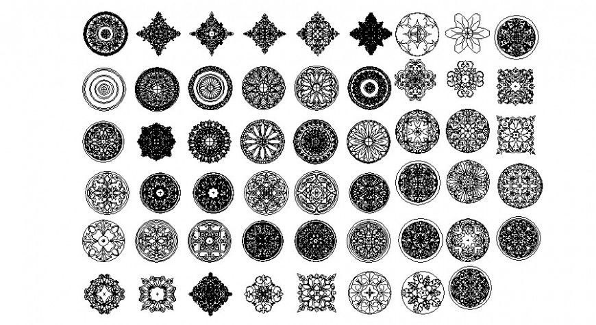 CAd drawings details of rosette library detail units blocks dwg file that includes line drawings of interior blocks