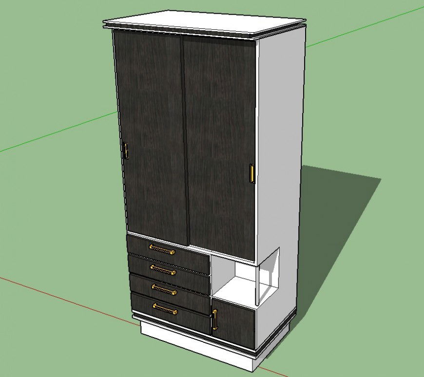 3d model of two open door cupboard with drawer design in sketch up file, download in free and use this 3d model in the bedroom for store the cloth in skp presentation