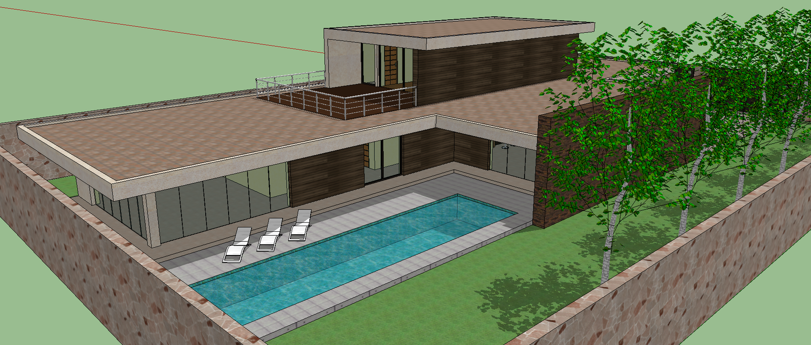 3d model of modern House design with much more detailing in sketch up format. Modern House Design Download file, Modern House Design Detail.