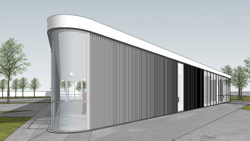 3d model of museum building design sketchup file includes tree blocks, compoundery wall, and landscaping design, download in free feature of 3d meseum building design skp file