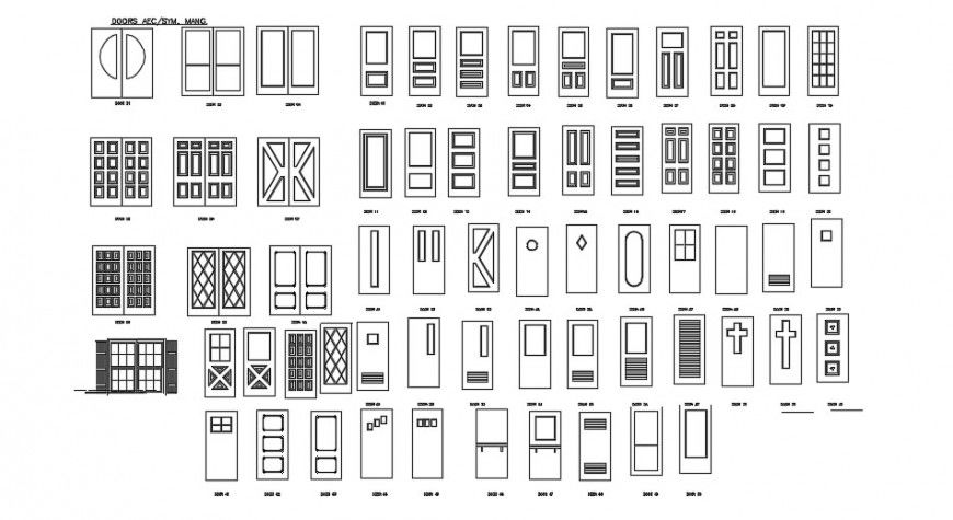 Find here different size and design of wooden door cad blocks dwg file, download in free cad file and use for cad presentation for furniture and interior design.
