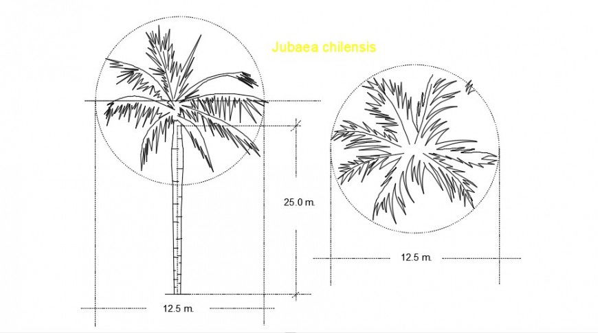 Find here side view and top view of Jubaea chilensis tree along with mansion here hight and wideness detail of Jubaea chilensis cad file download with free feature.