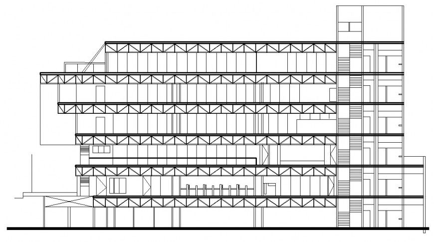 Construction detail of a high building . here there is 2d elevation of a building . its grill detailing and side elevation of a building is shown in auto cad format