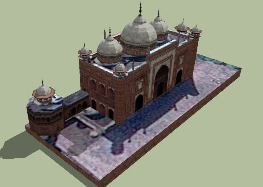 3D elevation of a masjid detail. here there is 3d sectional view and elevation view of a masjid , domb structure detailing project