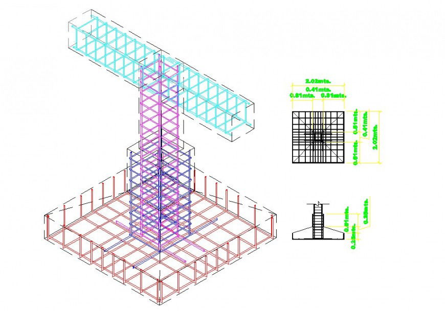 Construction of a grill tower detail. here there is grill construction tower detailing with building foundation detailing in auto cad format