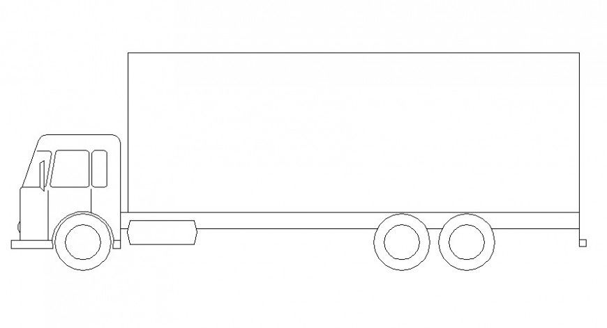 Loading truck elevation in AutoCAD file its include detail of wheel truck main body with loading area with rectangular container.