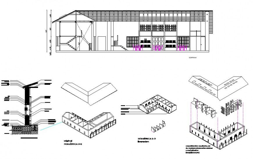 Cafe sectional elevation detail concept. this file contains 2d layout plan of a restaurant, with dining arrangement, seating arrangement details, with all sectional detail in auto cad format