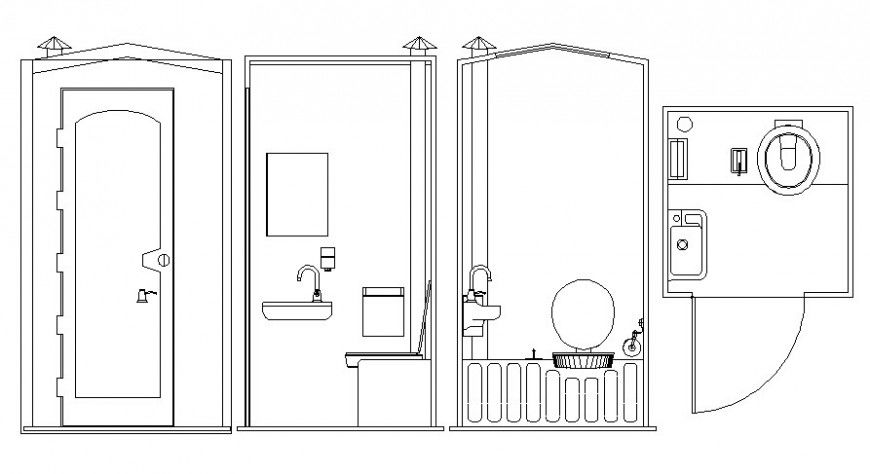 Bathroom elevation in AutoCAD software its include detail of base door washing area mirror bath tub wash basin and bathroom support area water line and stop valve and other detail in view.