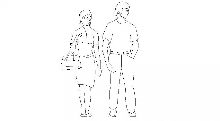 Modern couple block in AutoCAD file its include couple walking position with modern dresses in file.