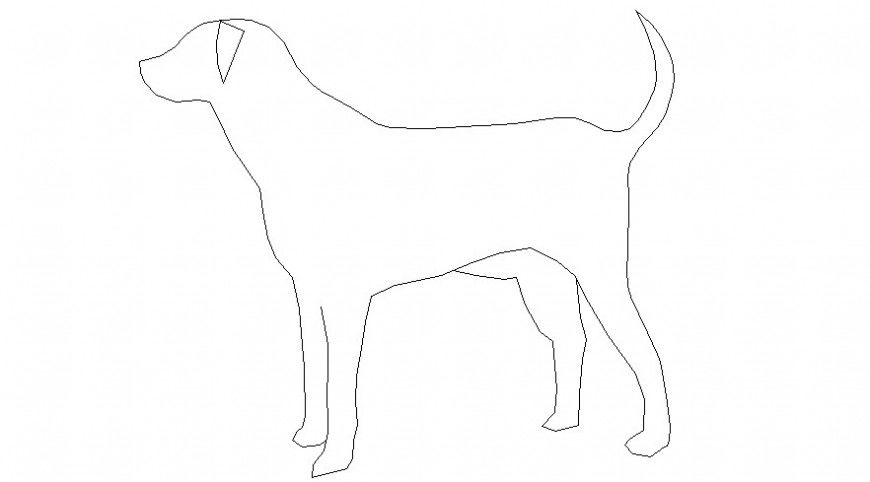 Dog side view in AutoCAD file its include detail view of dog body with curved tail in view of file.