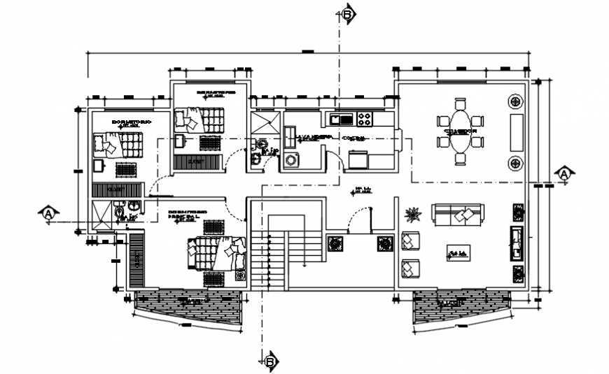 House plan in AutoCAD file its include detail of area distribution wall area and bedroom kitchen washing area and dining area door and stair in view stair and important dimension in view.