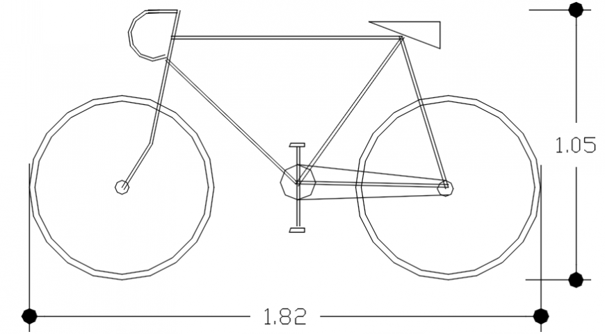 Autocad drawing of cycle side elevation showing every detail with dimensions.