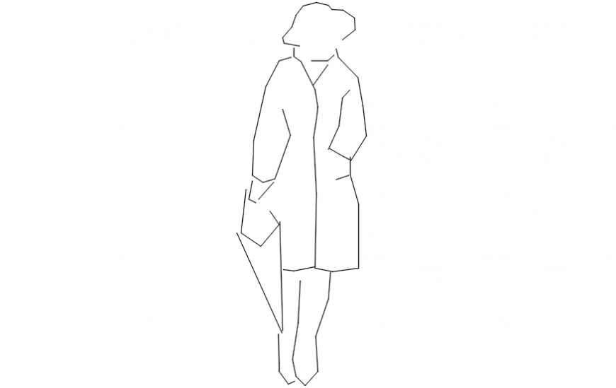 Lady and umbrella 2d model. here there is 2d front elevation of a lady with coat and umbrella in auto cad format