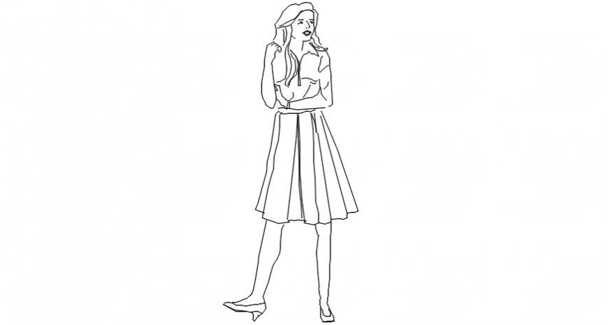 Lady posing model 2d. . here there is 2d front elevation of a lady with skirt posing style in auto cad format