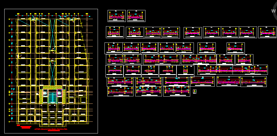 The Hospital Beam Framing Plan DWG CAD drawing file provides a highly detailed structural layout for the ground floor of a hospital building. This AutoCAD drawing includes comprehensive beam framing plans, beam elevation details, and structural alignment information essential for precise load distribution and construction execution. The drawing ensures engineers can easily understand the beam positioning, spacing, and connection with columns, slabs, and walls, which are critical for achieving overall building stability and safety.