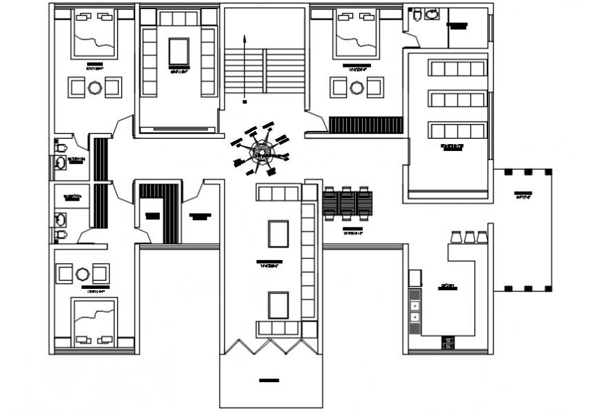 Modern house top view plan. here there is top view house plan showing living area details, gym concept design, car parking area and bedroom furniture detailing