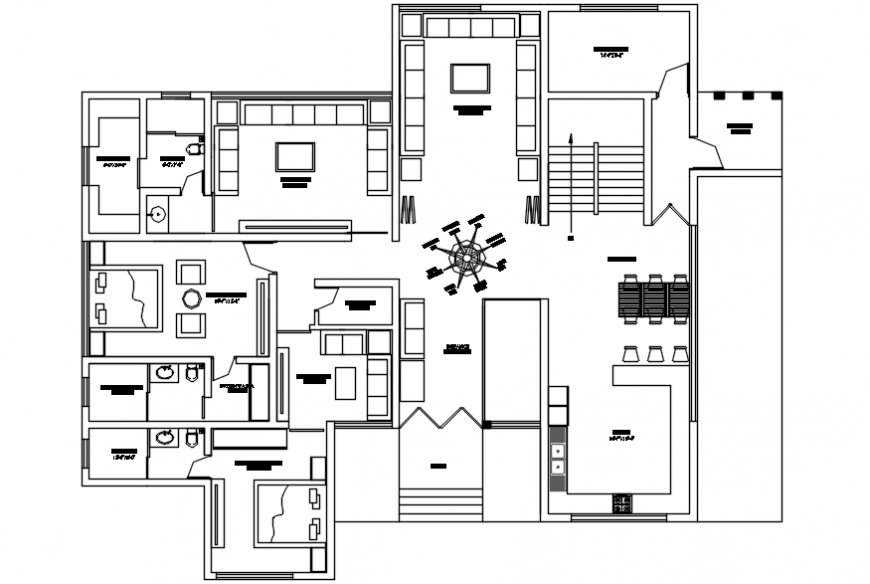 Modern house top view plan. here there is top view house plan showing living area details, gym concept design, car parking area and bedroom furniture detailing
