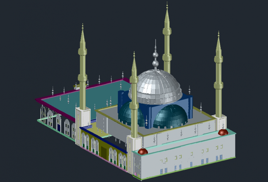 Mosque 3d concept exterior. here there is front and exterior elevation concept of mosque detailing , glass detail finish file in auto cad format