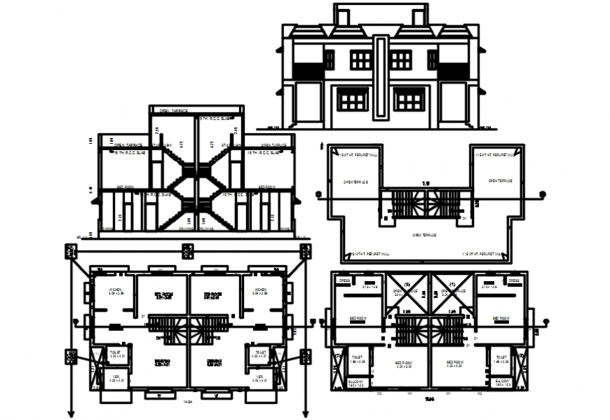 Luxurious big bungalow 2d concept detailing ,elevation of a modern bungalow and exterior , brick construction and terracota tiles roofing detail , complete view of house