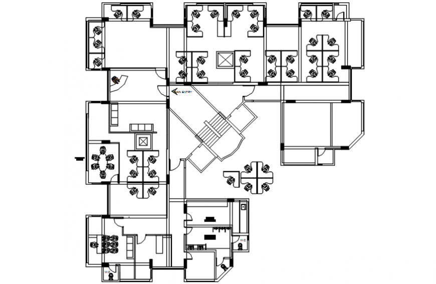 top view layout plan of a office dwg file, here there is top view 2d layout plan of office, containing meeting room, pantry, offices, cabin