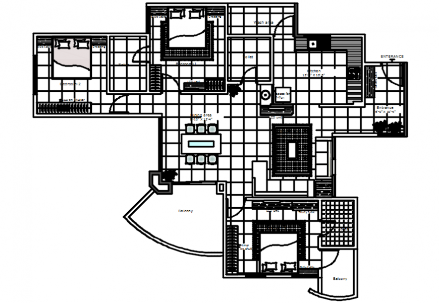 Modern house top view plan. here there is top view house plan showing living area details, gym concept design, car parking area and bedroom furniture detailing