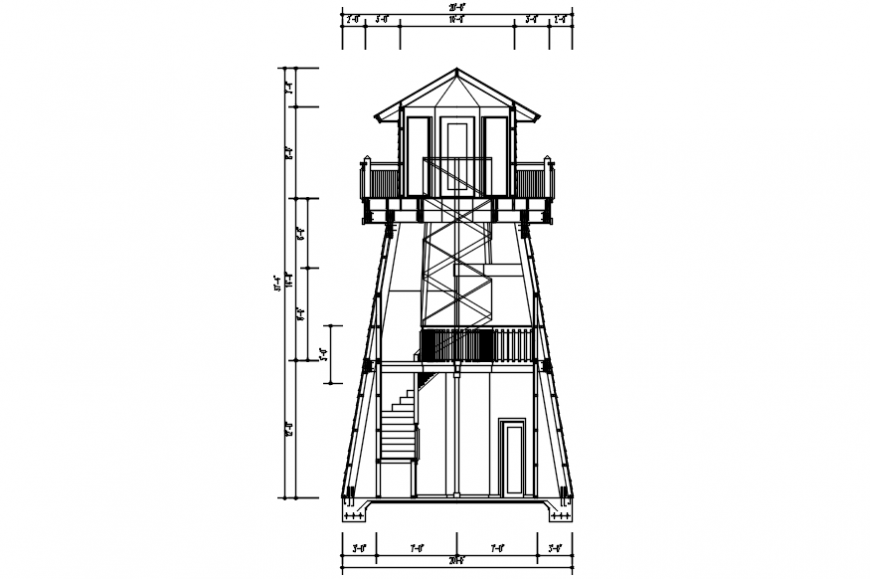 Light house building detail. here there is front sectional detil of building with triangle shape structure design in auto cad format
