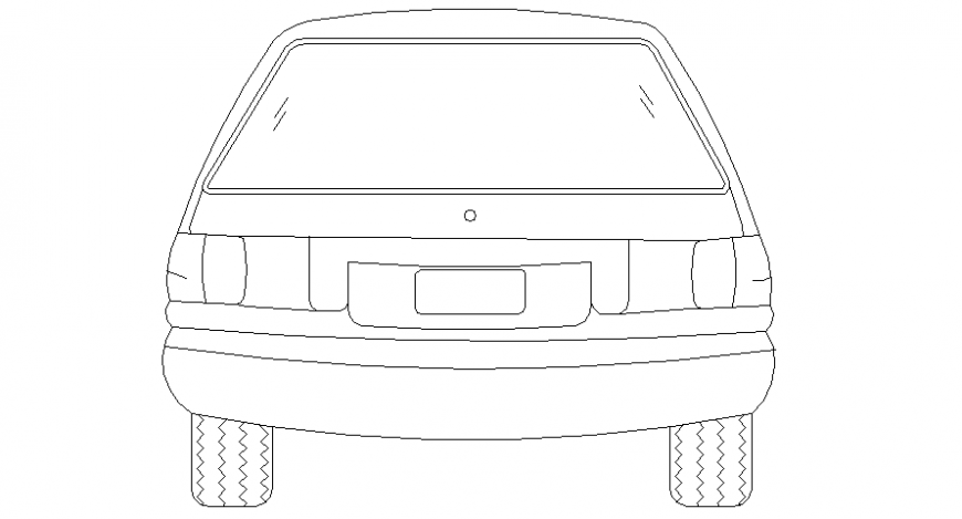 Car back view model detail. here there is back view elevation model detail of car showing lights and exterior view