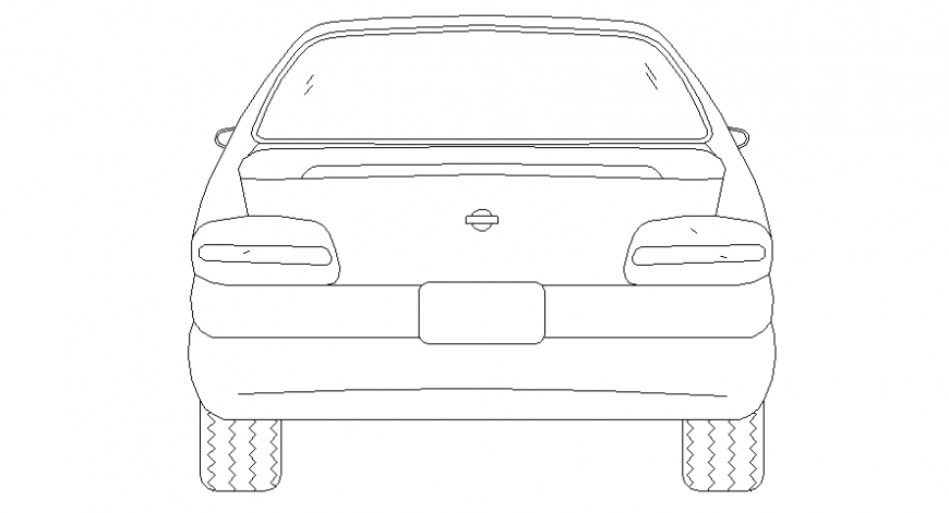 Car back view model detail. here there is back view elevation model detail of car showing lights and exterior view