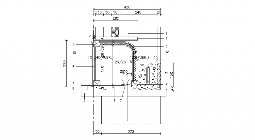Pipeline sectional detail. here there is pipeline detail with text detail with sectional inner detail in auto cad format