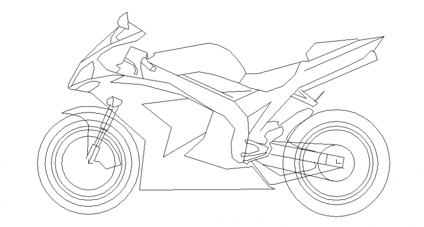 Bike side view detail model. here there is side view of sports bike detailing in 2d model format
