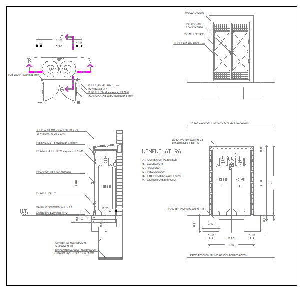 Gas cylinder Detail Download file. A gas cylinder or tank is a pressure vessel used to store gases at above atmospheric pressure.Gas cylinder Detail DWG file, Gas cylinder Detail design.